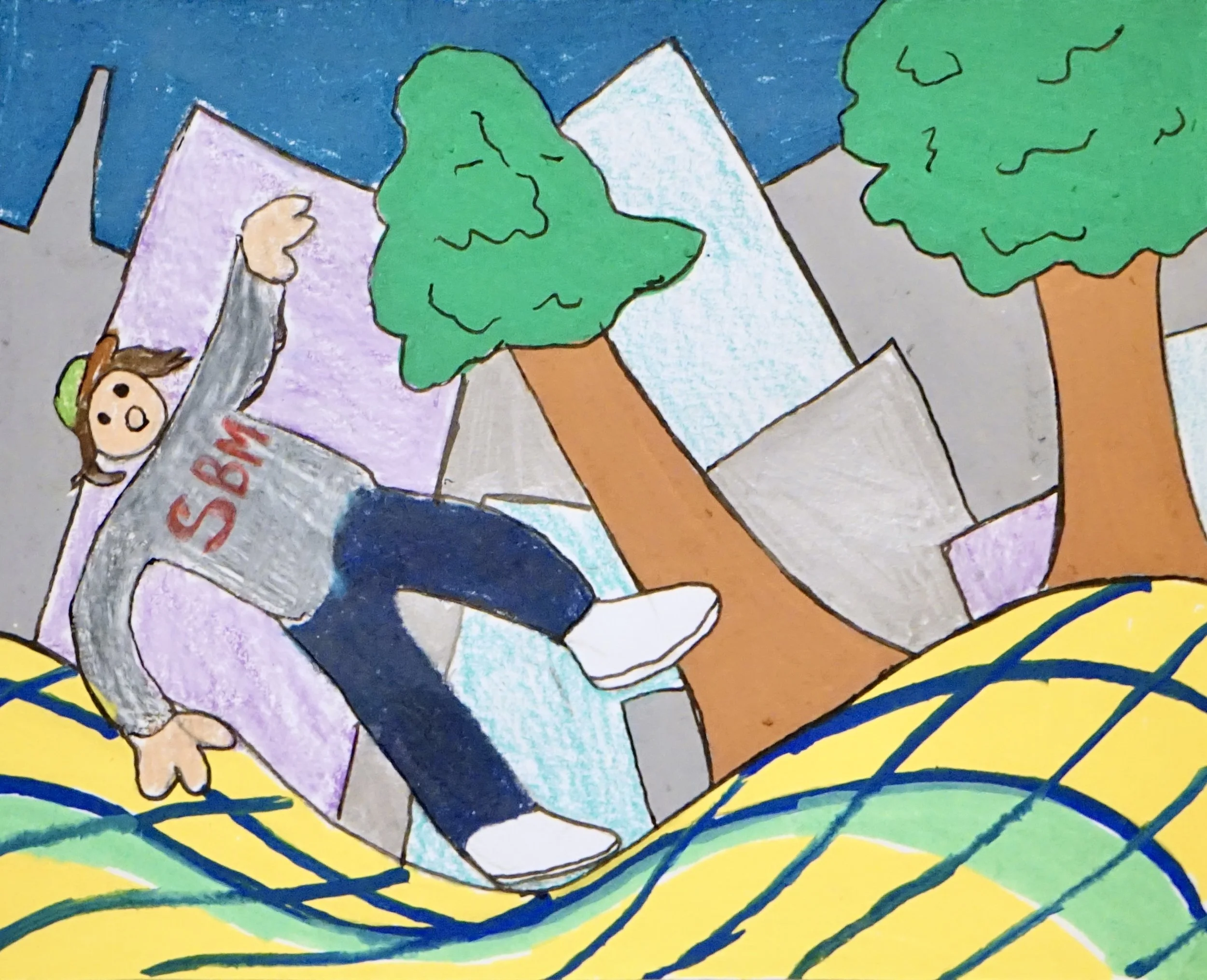 SBM panel #1. 2021. Color Pencil and Gouache.