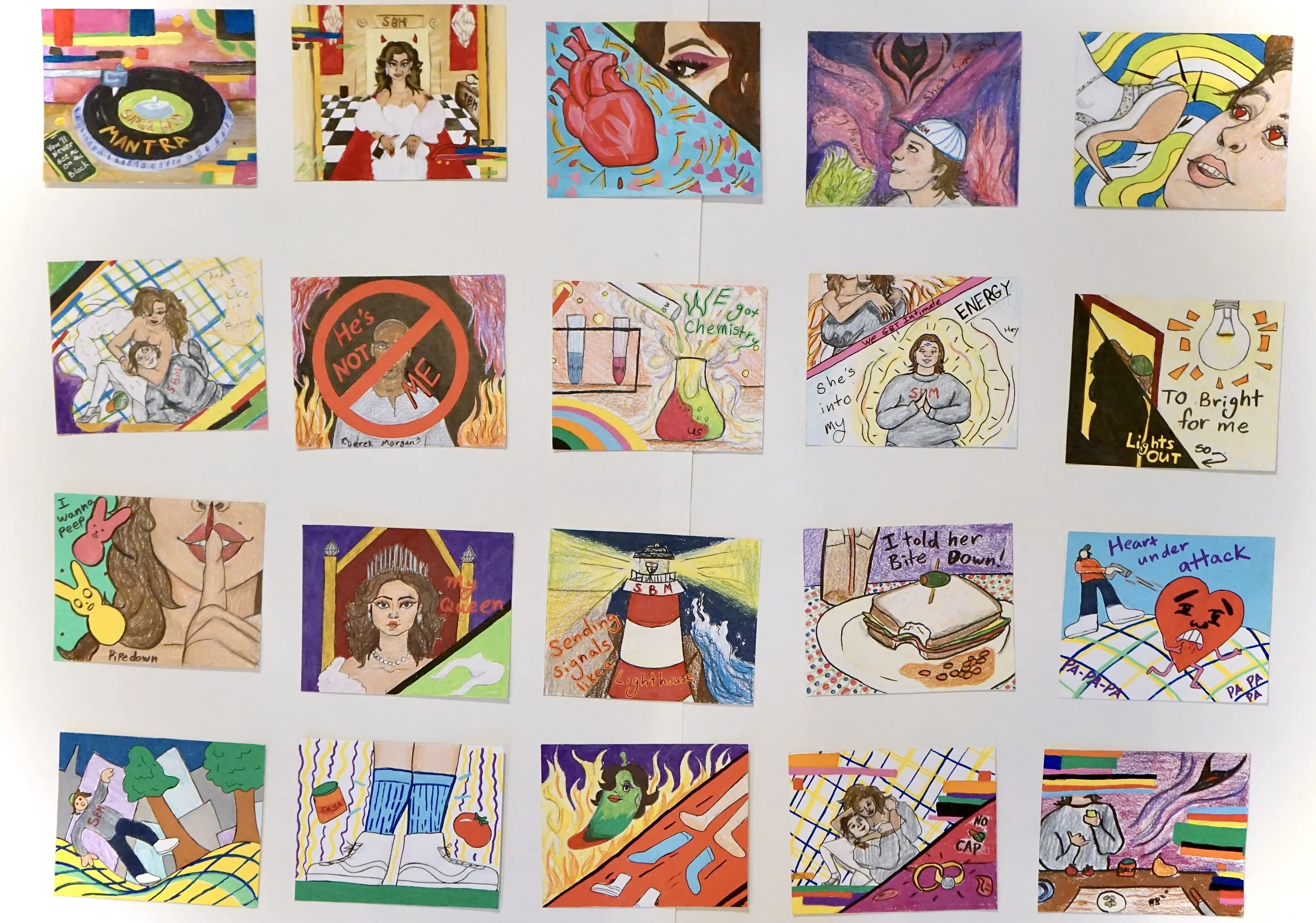 All Super Bad Mantra Panels. 2021. Color Pencil and Gouache.