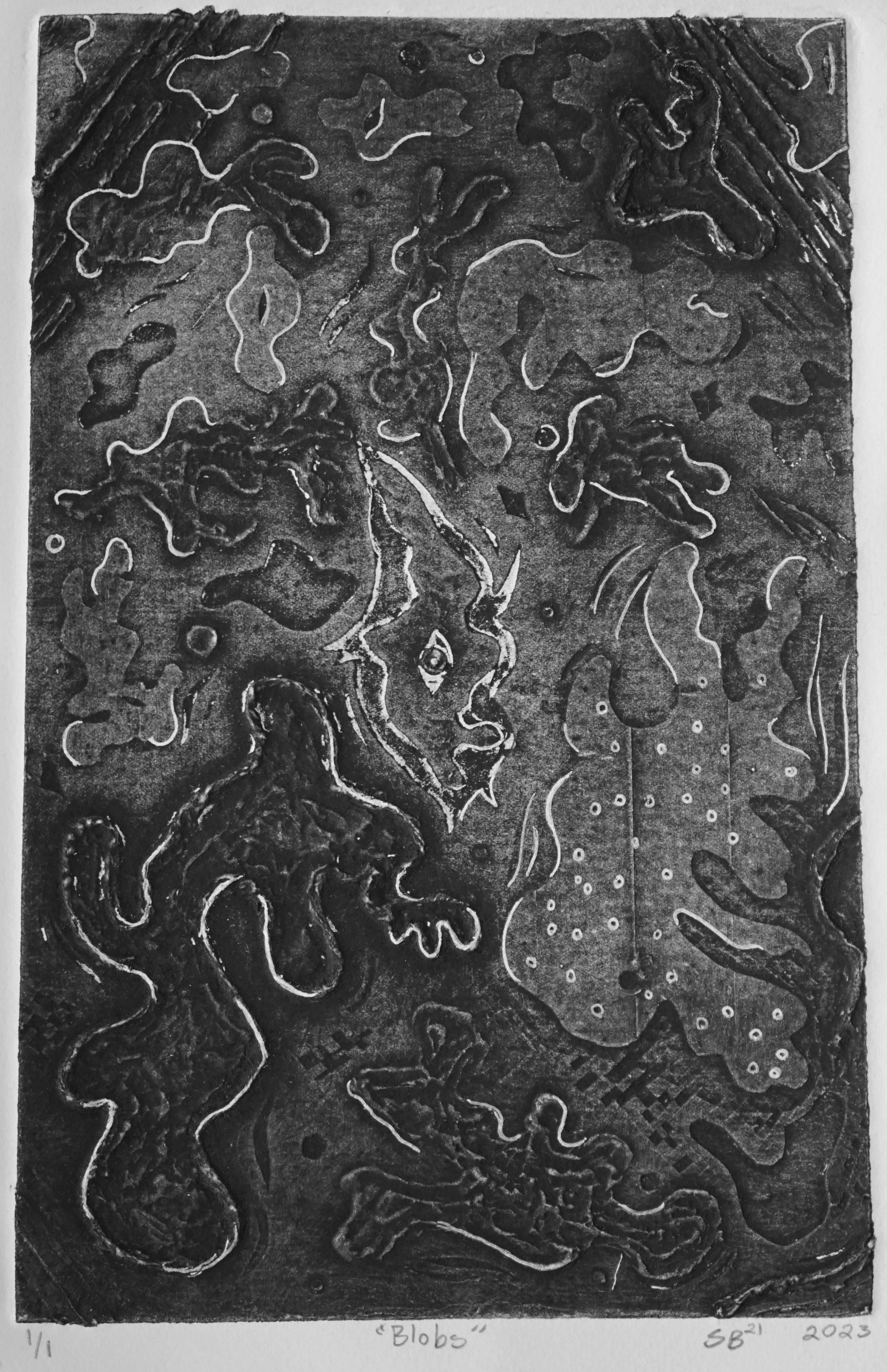 Blobs. 2023, Collagraph with watercolor. 1/1. Blobs. 2023, Collagraph. 1/1. Blobs collagraph plate. Slide 1 Slide 1 (current slide) Slide 2 Slide 2 (current slide) Slide 3 Slide 3 (current slide)