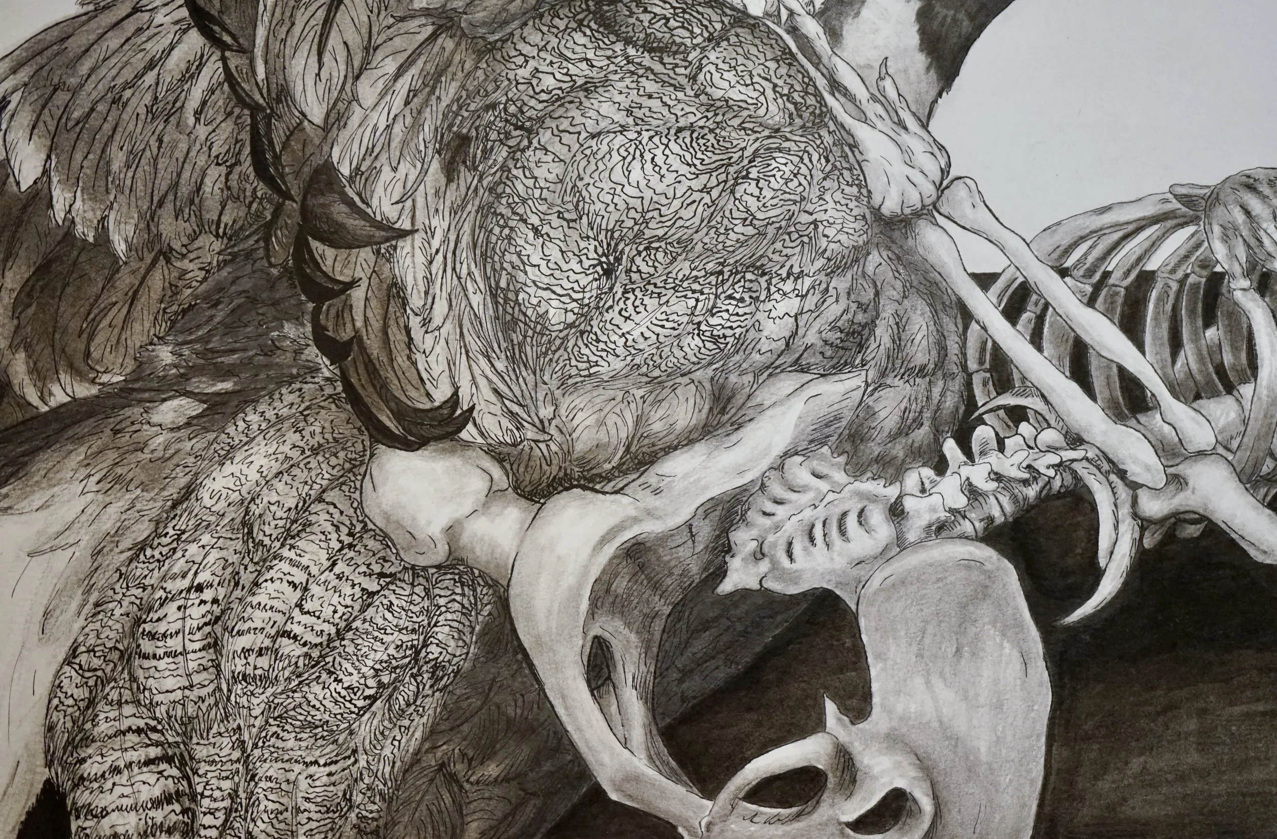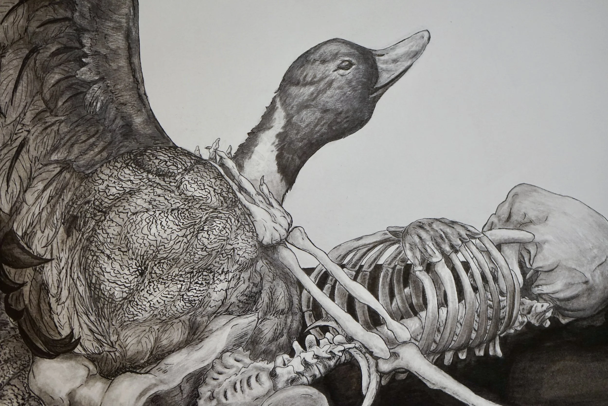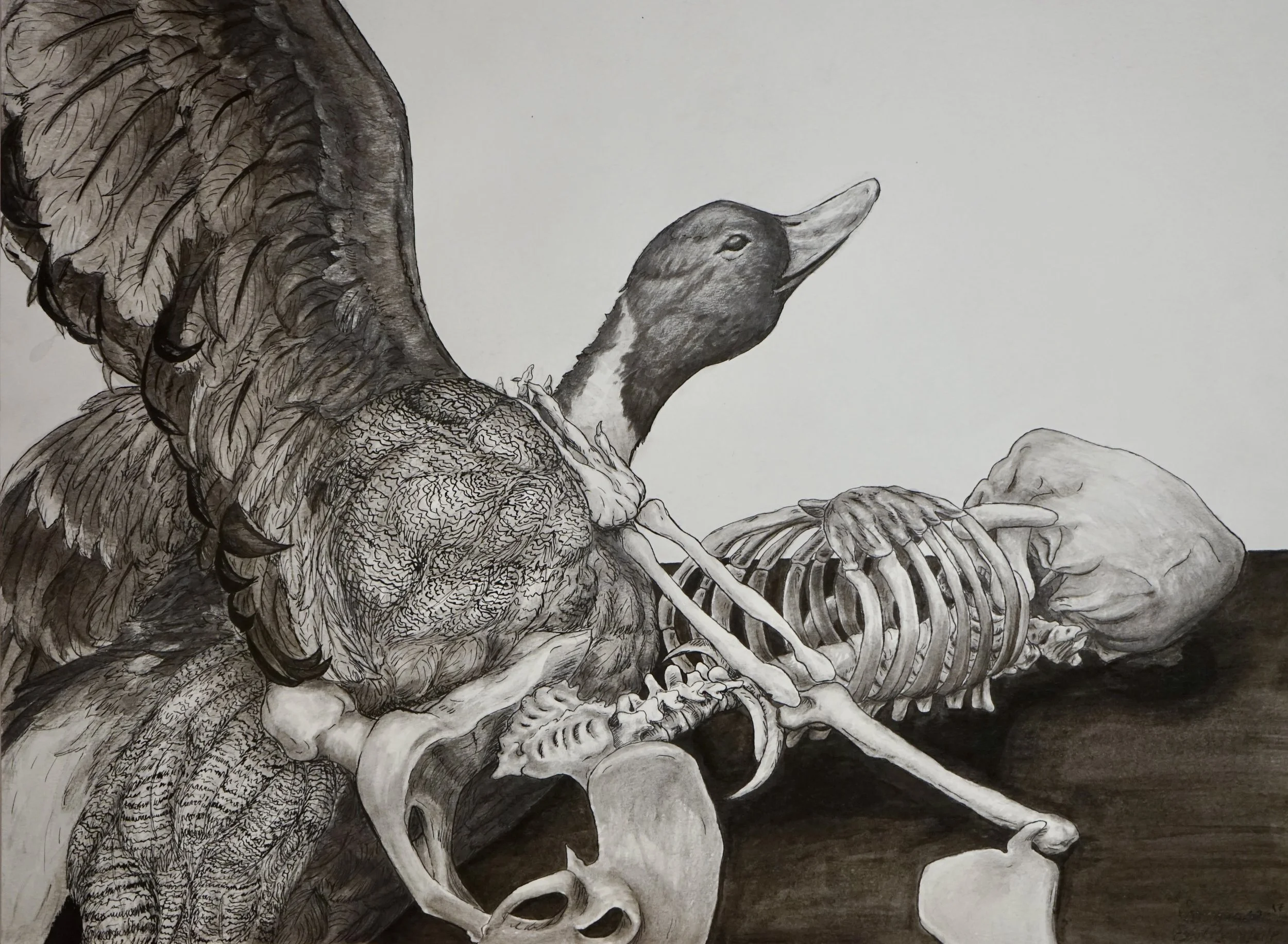 Duck and Bones. 2019, India Ink.